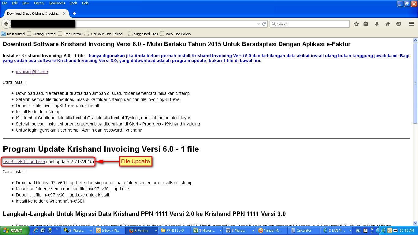 - Download file update dahulu. (Silahkan hubungi kantor Krishand Software untuk mengetahui link download)