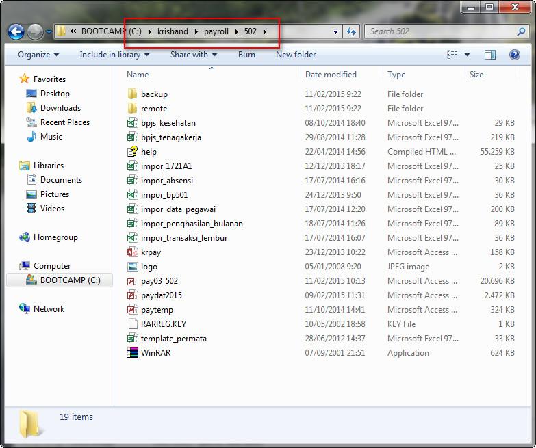 - Installer akan membuat folder baru otomatis di C:\krishand\payroll\502\