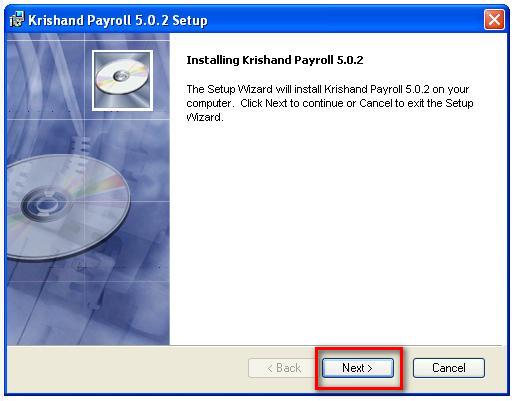 - Lalu akan tampil jendela Krishand Payroll 5.0.2 Setup, klik tombol Next