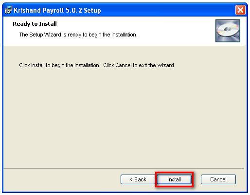 - Klik Install pada jendela Krishand Payroll 5.0.2 Setup