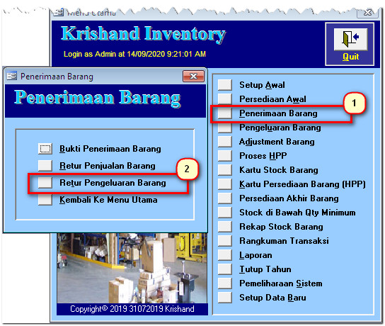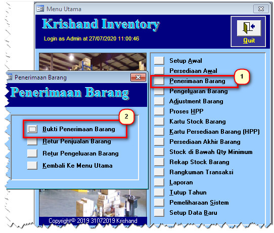 Penambahan persediaan barang harus dilakukan pencatatan, agar rekap persediaan stock barang sesuai dengan ketersediaan yang ada di gudang. Penerimaan barang bisa dari berbagai transaksi, seperti pembelian barang, retur penjualan barang dan retur pengeluaran barang. Jika ada transaksi penambahan barang cara pencatatan pada Krishand inventory sebagai berikut