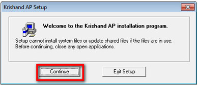 d. Setelah ekstrak tampil krishand setup instalasi – klik continue