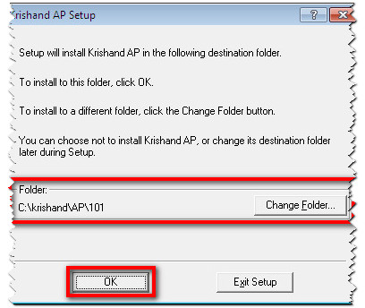 terisi c:\krishand\AP\101 jika ingin mengubah klik tombol change folder, setelah file sudah