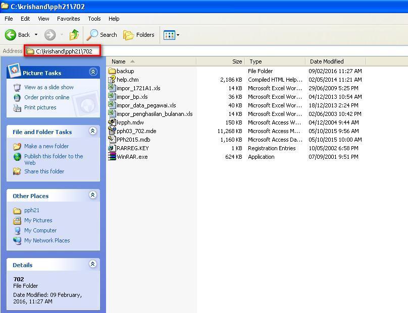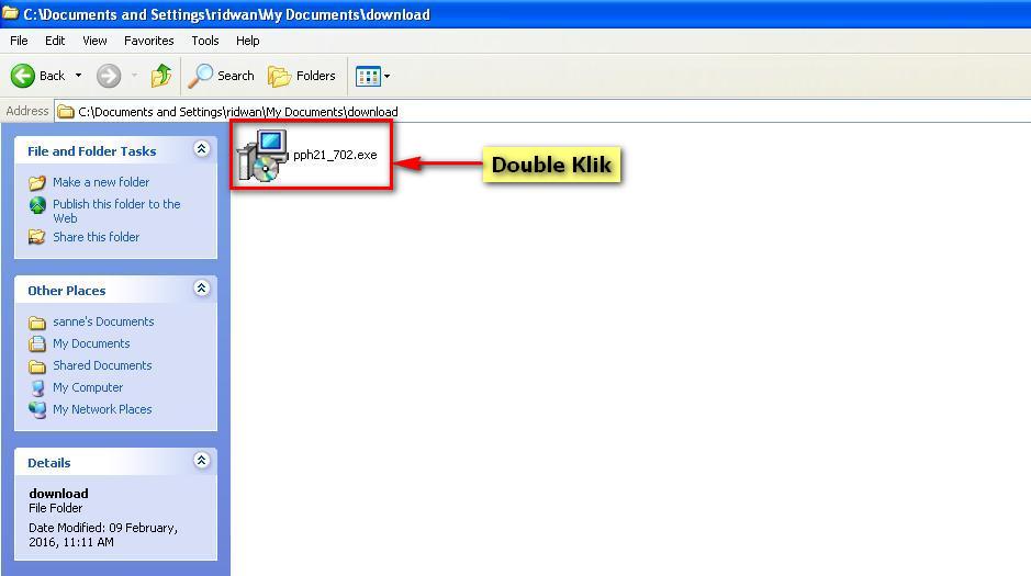 - Buka windows explore dan cari folder yang menyimpan file download tersebut. Selanjutnya proses install, double klik file pph21_702.exe.