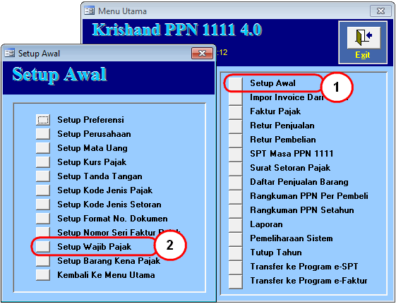 - Dari Menu Utama Krishand PPN, pilih dan klik Setup Awal.