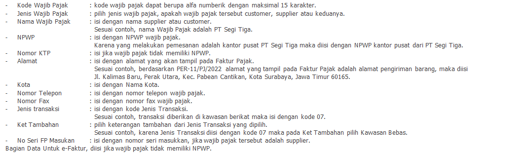 Setelah data Wajib Pajak dengan alamat NPWP Cabang sudah dibuat, selanjutnya buat Faktur Pajak di dalam Krishand PPN sesuai ketentuan yang diatur dalam Pasal 6 ayat (6) PER-03/PJ s.t.d.d PER-11/PJ/2022* dalam pengisian alamat di kawasan tertentu atau tempat tertentu yang mendapatkan fasilitas PPN atau PPN dan PPnBM tidak dipungut. Berikut langkah – langkahnya :