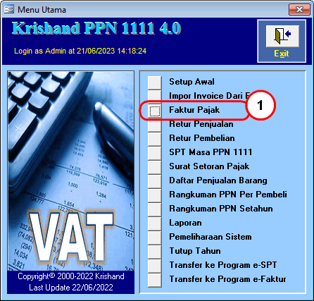 - Pada Menu Utama Krishand PPN, pilih dan klik Faktur Pajak.