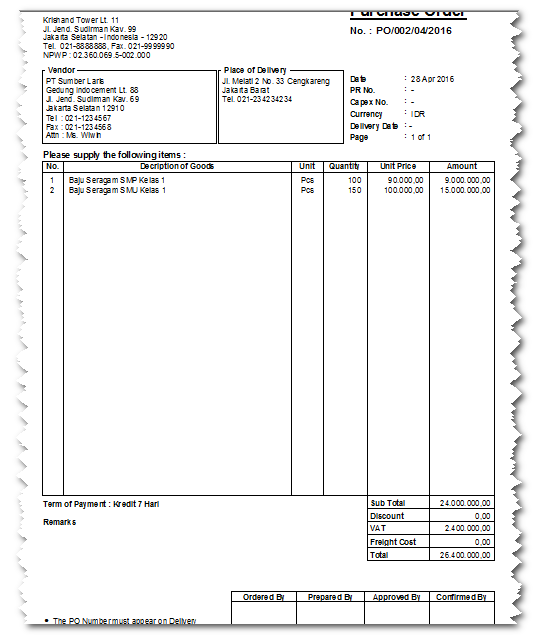 5. Berikut tampilan laporan PO hasil dari Krishand