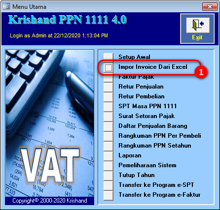 1. Dari menu utama krishand pilih menu impor invoice dari excel