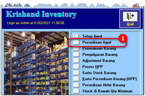 1. Dari menu utama krishand pilih persediaan awal