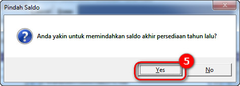 4. Saat tampil pesan “anda yakin memindahkan saldo akhir persediaan tahun lalu?” klik yes untuk melanjutkan