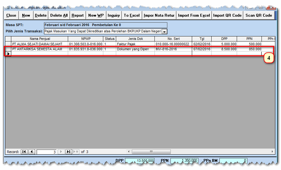 Faktur pajak masukan yang di terima perusahaan dapat dari lawan transaksi dapat berupa faktur pajak atau dokumen lain yang di persamakan dengan faktur pajak. Saat menerima faktur masukan berupa dokumen lain, langkah pada krishand untuk menambahan dokumen lain berikut langkahnya :