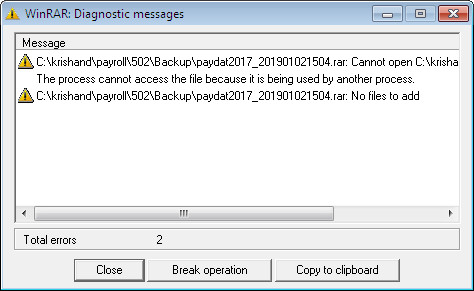 Backup data gagal jika tampil pesan error saat melakukan backup data seperti di bawah ini