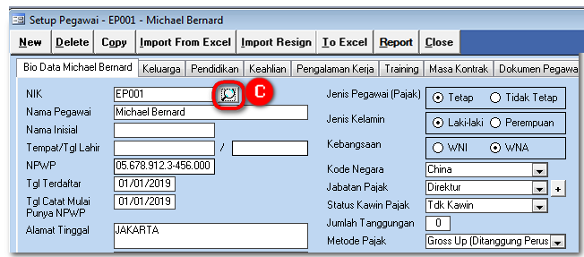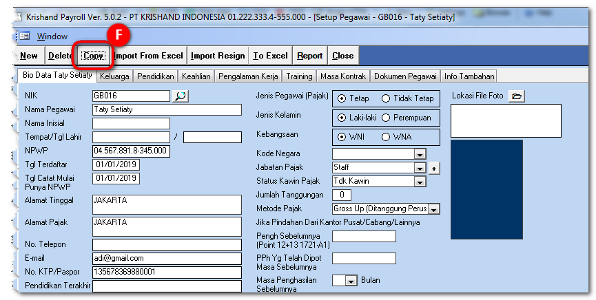 Fungsi Tombol Copy di Menu Setup Pegawai Krishand Payroll