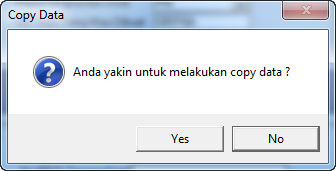 - Pada message box "Anda yakin untuk melakukan copy data ?", klik Yes untuk melanjutkan proses copy data.