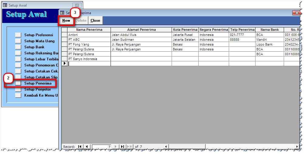 Menambah Data Penerima Pada Krishand Cek/Giro