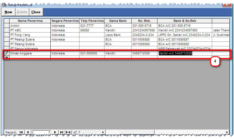 Untuk menyimpan dan menambahkan penerima baru kembali klik tombol new jika ingin menutup menu setup penerima klik close
