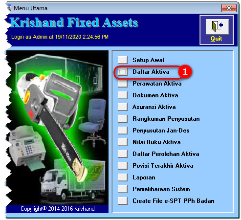 1. Dari menu utama krishand pilih menu Daftar aktiva