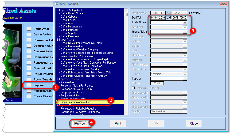 Mencatat Perawatan Aktiva di Krishand Fix Asset