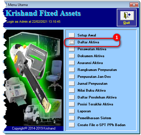 1. Dari menu utama krishand pilih menu daftar aktiva