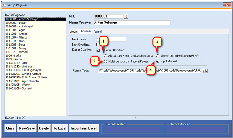 Perhitungan lembur ini mengacu pada jadwal keluar pegawai sampai aktual keluar pegawai.