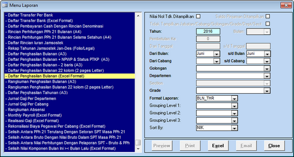 - Tarik Laporan. Penarikan Laporan dengan format laporan yang tidak terdapat nominal THR. Umumnya menggunakan kode format yang mengandung kata Non seperti pada gambar.